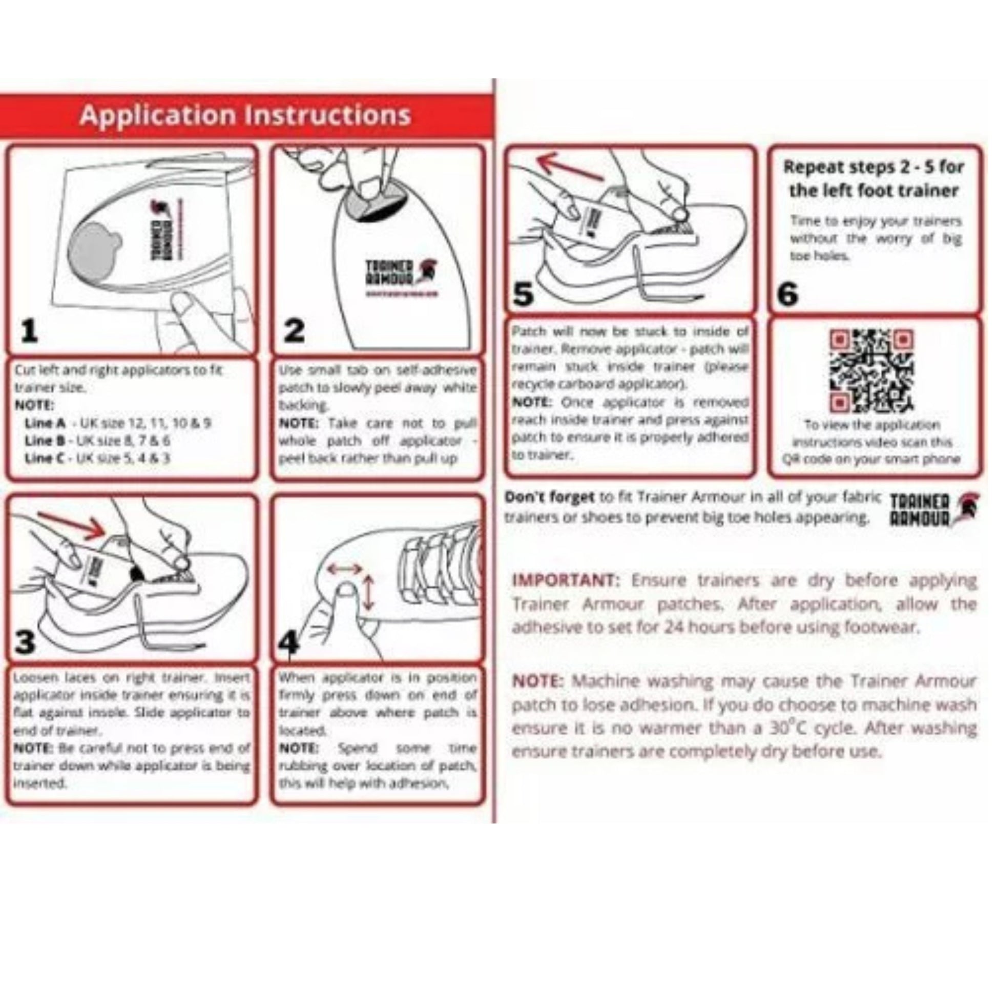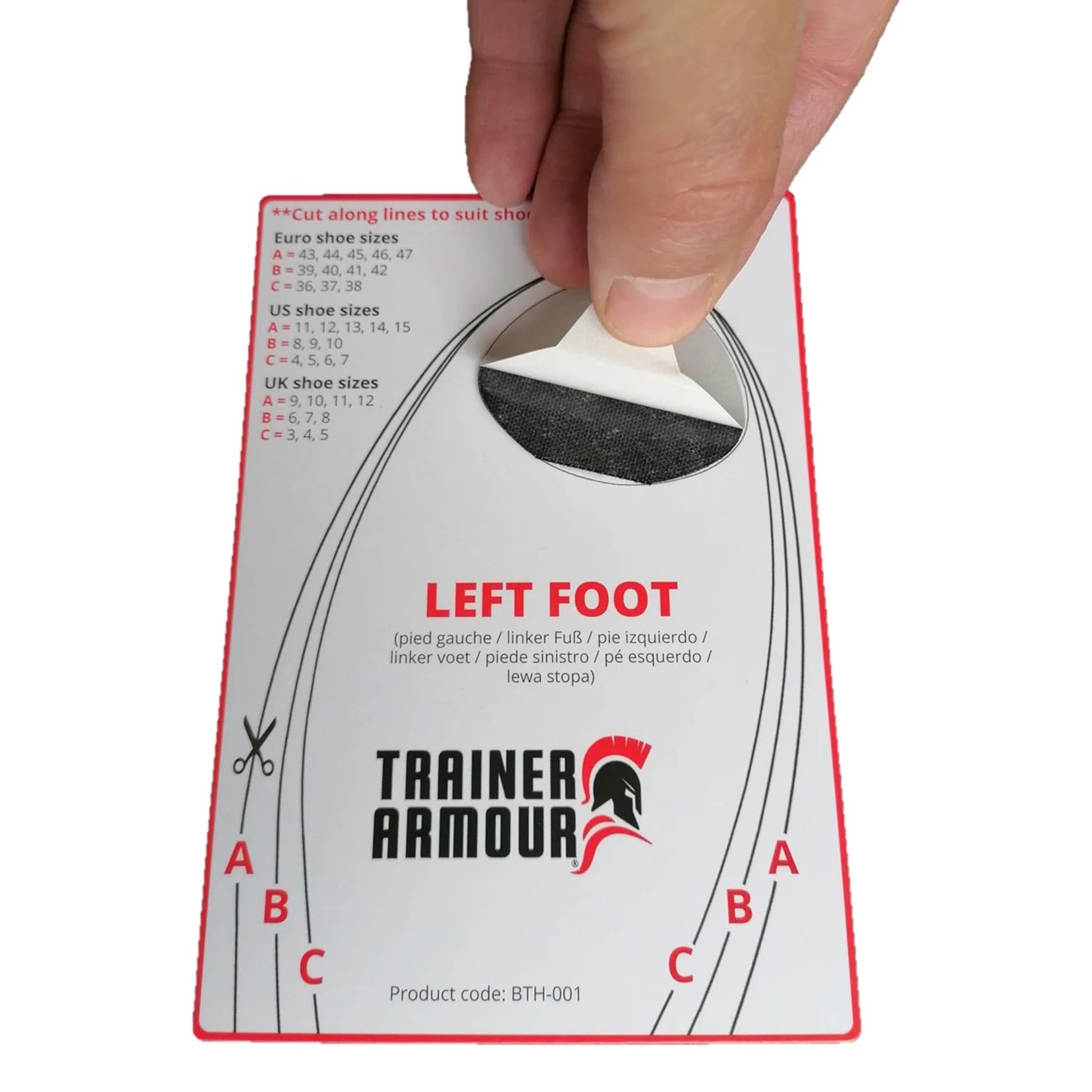 The Trainer Armour Big Toe Hole Preventer is a reinforced self-adhesive patch system designed to stop your big toe from wearing holes in your trainers, running shoes, or fabric footwear. Easy to apply and discreet once fitted, these patches provide long-lasting protection and can also be used for minor shoe repairs.